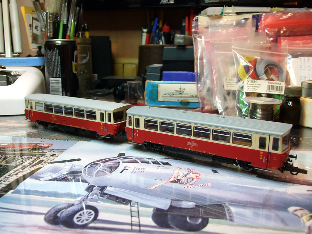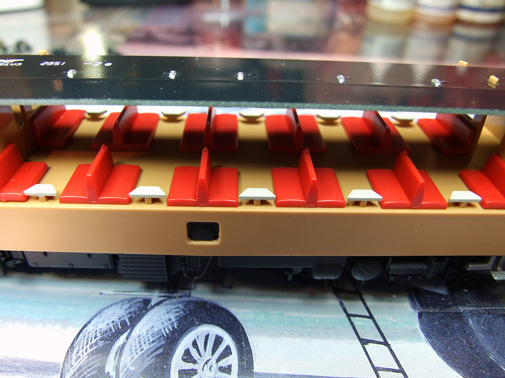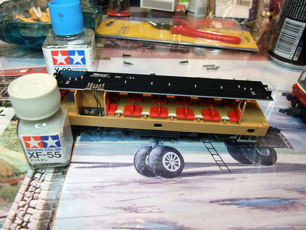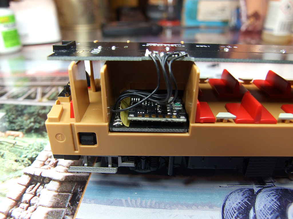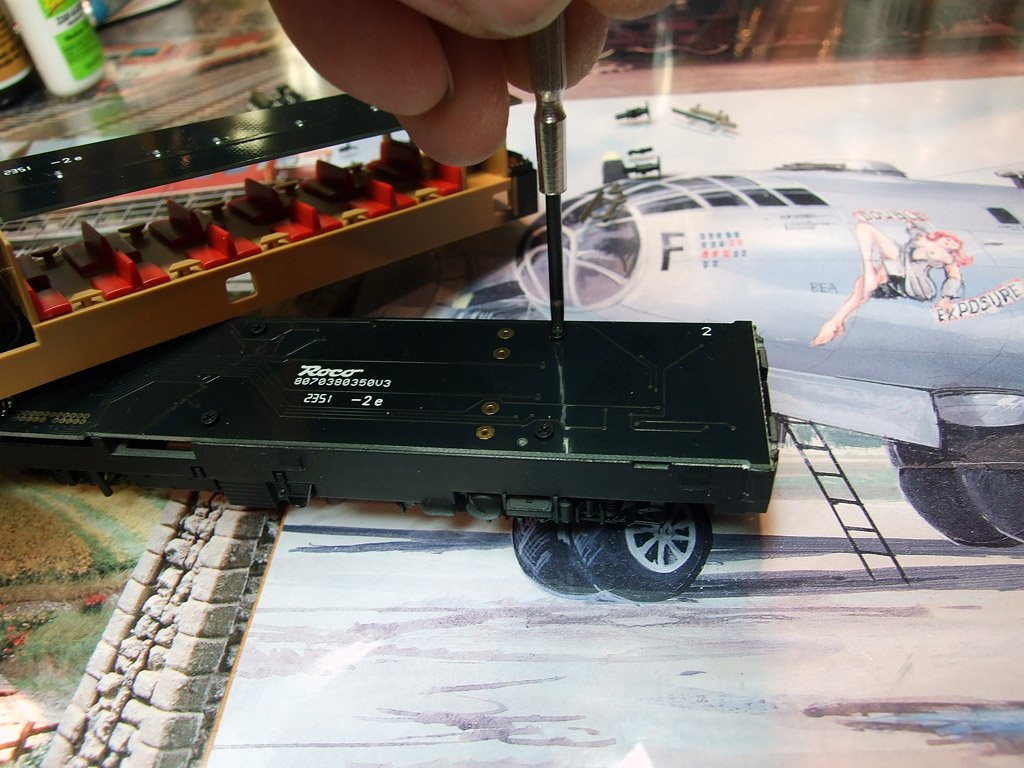 Tentokrát jsem se pustil do ozvučení motorového vozu M152.0262 a přípojného vozu Blm od firmy Roco. Nejdříve je potřeba z karosérie vysunout nárazníky a imitace vzduchových hadic a háků, aby se dala sundat karosérie. Po sundání karosérie jsem musel ze západek uvolnit interiér a odšroubovat spodní plošný spoj od podvozku, ve kterém jsou připraveny otvory s ozvučnicí pro reproduktor. Po přilepení reproduktoru k ozvučnici v podvozku jsem zpět přišrouboval spodní plošný spoj a zacvakl zpět interiér. K ozvučení motorového vozu jsem použil zvukový dekodér Zimo MS450P22 PluX22 / 16bit, který jsem zasunul do připraveného konektoru. Nakonec jsem ještě natřel stolečky pod okny mezi sedačkami světle šedivou barvou Tamiya Deck Tan XF-55. Pak už stačilo jen nasadit karosérii a zajistit ji nárazníky a imitací vzduchových hadic a háků. U přípojného vozu Blm jsem stejným způsobem sundal karosérii jen proto, abych také natřel stolečky pod okny mezi sedačkami světle šedou barvou Tamiya XF-55. U přípojného vozu jsem použil pouze funkční dekodér pro účel osvětlení. Po sundání krytky zespodu podvozku jsem tento dekodér zasunul do připraveného konektoru a krytku zacvakl zpět do podvozku. Tímto bylo ozvučení motorového vozu hotovo. Na výsledek ozvučení se můžete podívat ve videu.