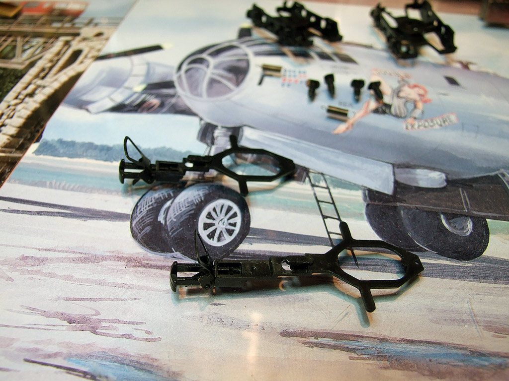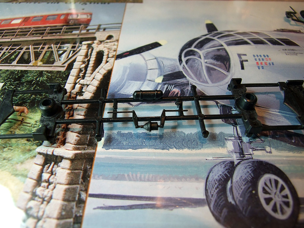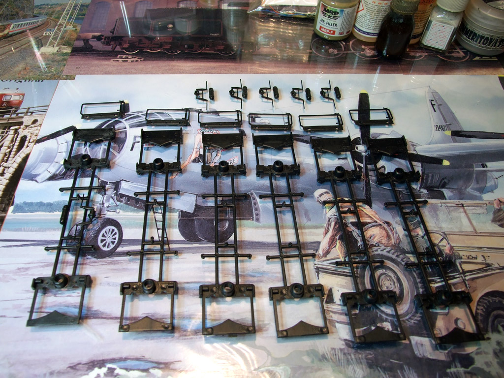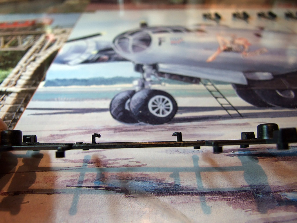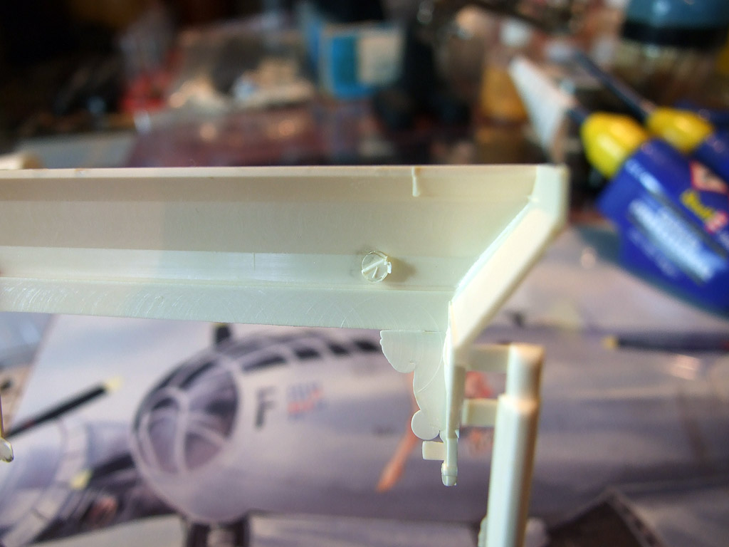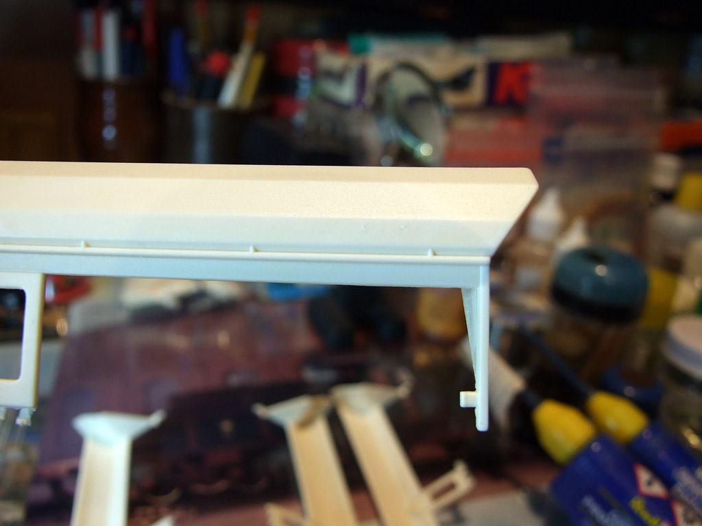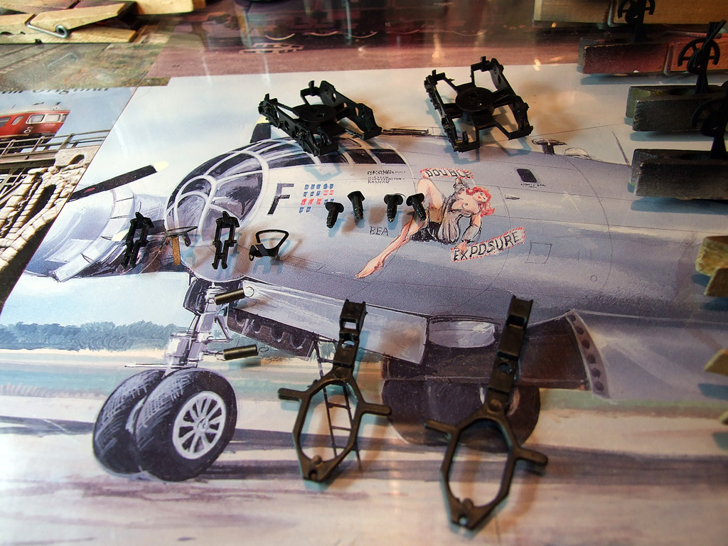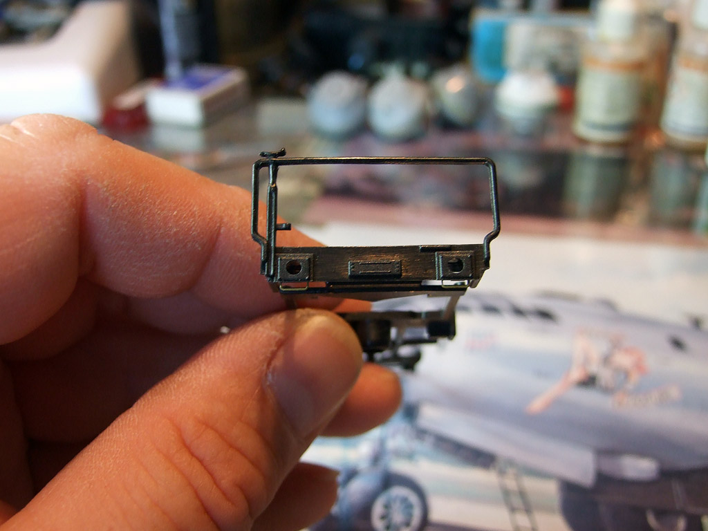 jsem přilepil čelník se zábradlím. Z leptaného kovu jsem vytvaroval schůdky, které jsem přilepil zespodu k brzdařské plošině. Jako závaží jsou ve stavebnici přiloženy matky M8. 🙂 Tyto matky jsem také přilepil k šasi podvozku. Celé šasi podvozku a leptaný žebřík jsem nastříkal černou barvou Gunze Semi Gloss Black 92 a výsypné mechanizmy klapek černou barvou Gunze Flat Black 33. Výsypné mechanizmy klapek jsem přilepil do karosérie a na karosérii jsem aplikoval obtisky. Po zaschnutí barvy na šasi podvozku jsem na něj nasadil nárazníky, kinematiky a dvouosé podvozky. Celý tento komplet jsem přilepil na karosérii vozu. Mezi brzdařskou plošinu a karosérii jsem přilepil leptaný žebřík a nasadil dvoukolí do podvozků. Celý vůz jsem nakonec nastříkal pololesklým lakem Gunze 181. Podrobněji vysvětlím u fotek.