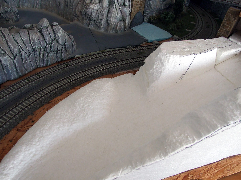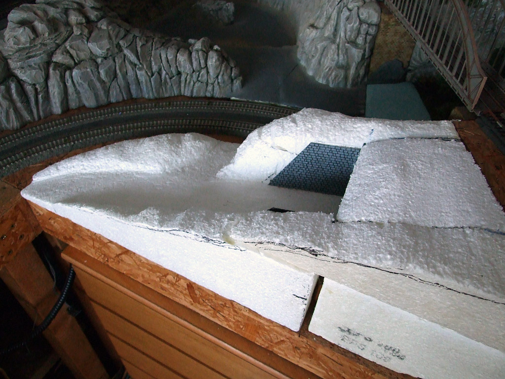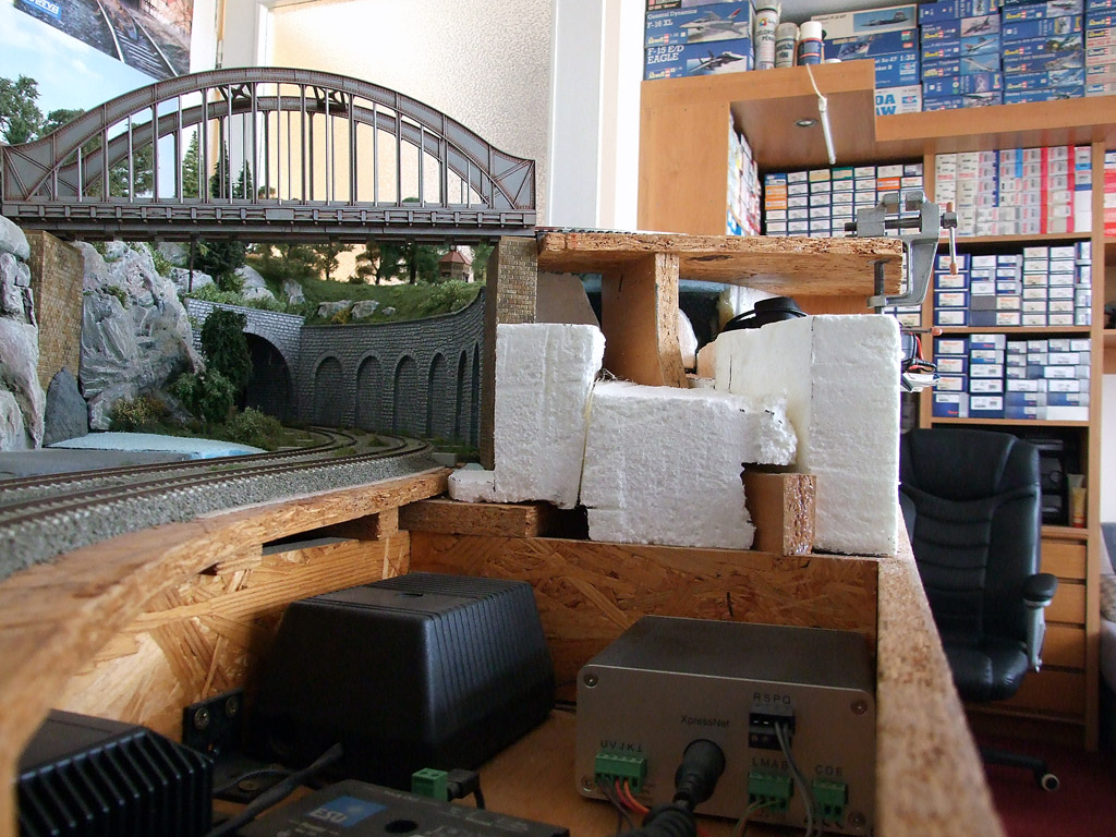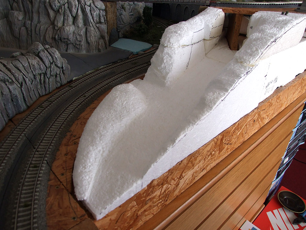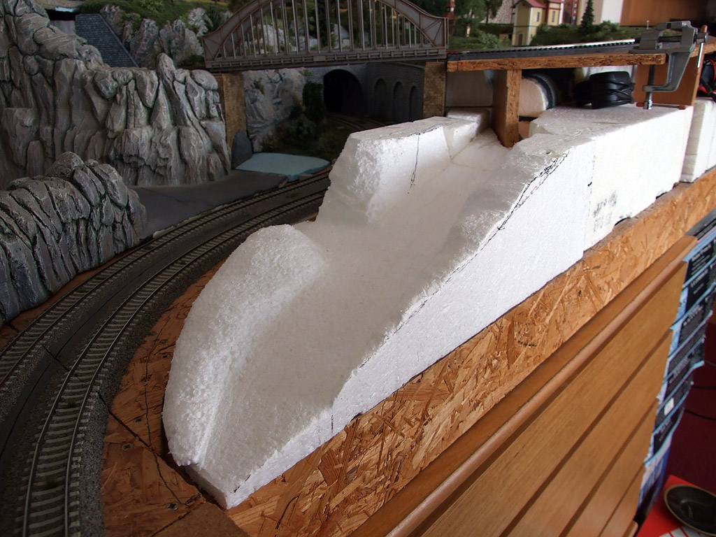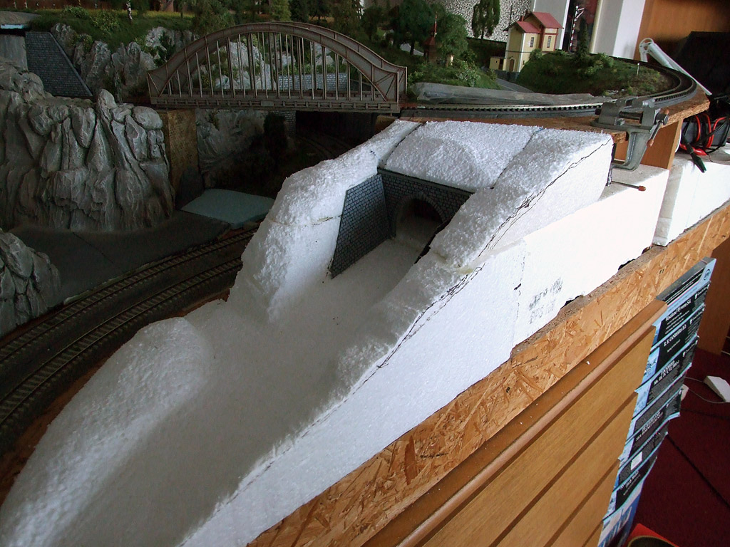 Ke konci roku jsem ještě vytvaroval terén na druhém konci silničního tunelu, kde silnice povede směrem dolů ke kolejím.