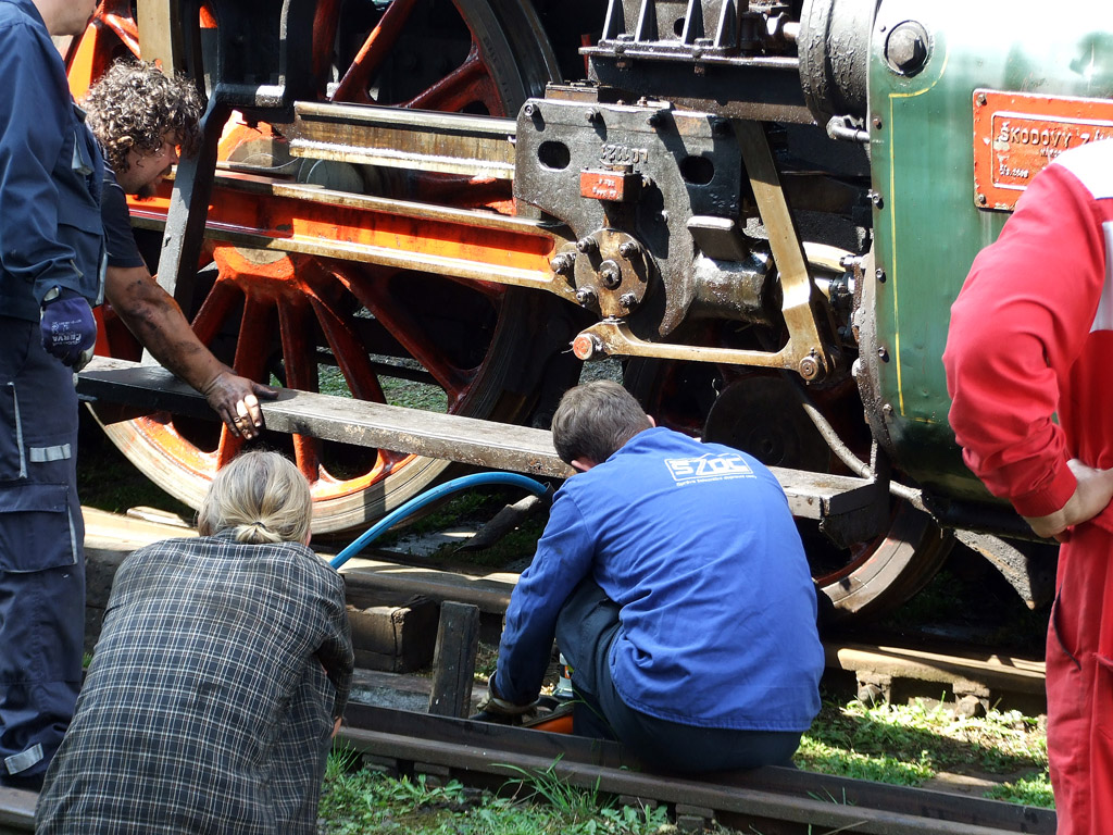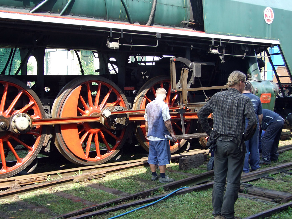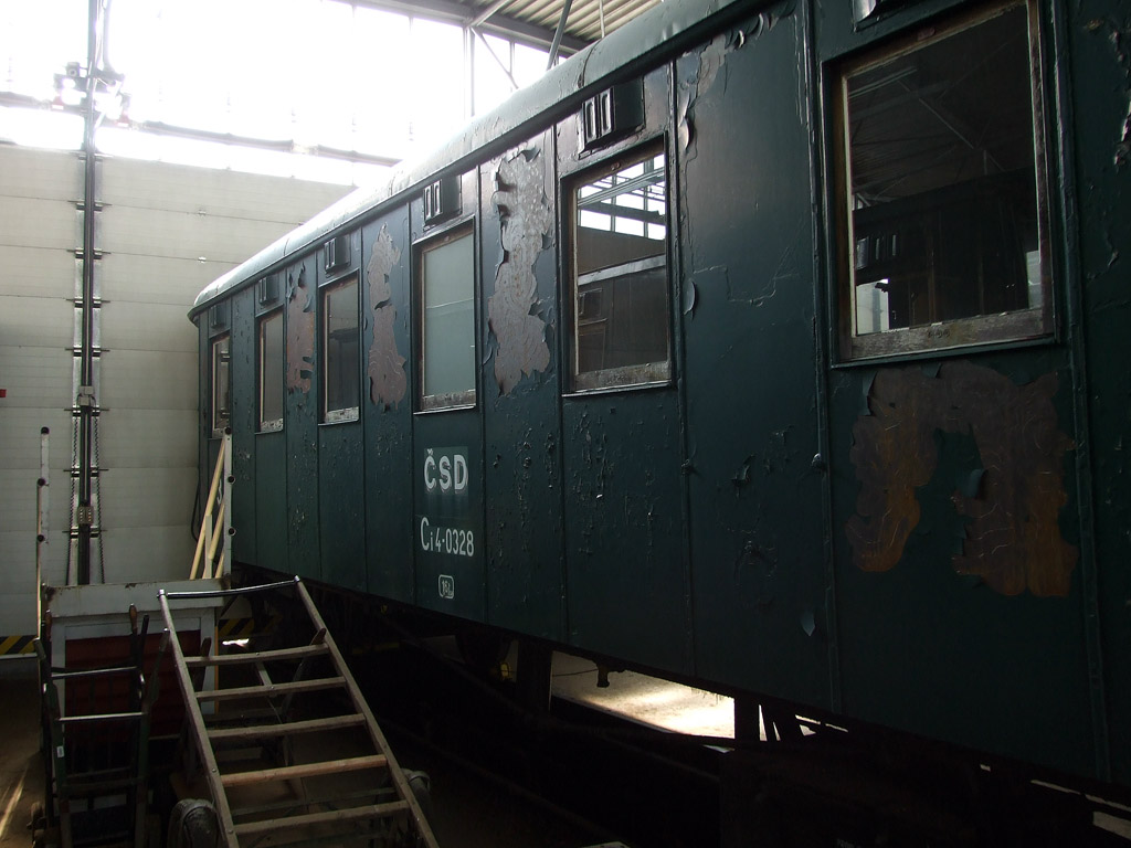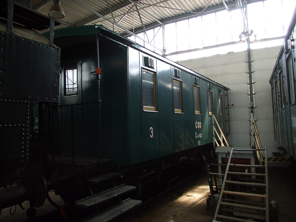 na letní sezónu. Naleznete zde téměř 100 kolejových vozidel nejrůznějších typů, lokomotivy, salonní, osobní i motorové vozy, elektrické a motorové lokomotivy i historické drezíny. Od tohoto roku NTM zpřístupňuje depozitář v pravidelné otevírací době široké veřejnosti. Návštěvníkovi se zde nabízí možnost prohlédnout si ty z nejcennějších železničních pokladů československé železniční historie. Při prohlídce však musí mít návštěvník stále na paměti, že se nachází v depozitáři, jehož prvořadým posláním je uchovávat hodnoty pro budoucí generace a zároveň maximálně využít prostoru krytých stání k jejich uložení. Prezentace vozidla v zcela nastrojeném stavu je úkolem až další fáze, kterou je výstavba stálých expozic v Muzeu železnice a elektrotechniky NTM na Masarykově nádraží v Praze. Při návštěvě depozitáře jsme byli svědky nakolejování Šlechtičny, která měla vykolejený přední běhoun. Na videu se můžete podívat na průběh nakolejování. |